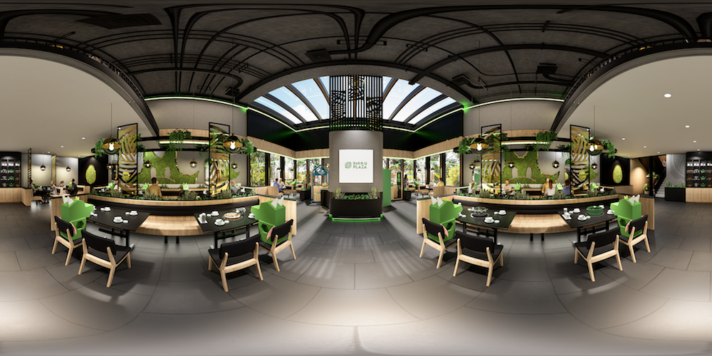 นางสาวบุณย์ญานุช บุญบำรุงทรัพย์ ประธานเจ้าหน้าที่บริหาร ด้านการสร้างโอกาสทางการตลาด กลุ่มธุรกิจอาหาร ฟู้ดแพชชั่น กล่าวว่า “ครั้งนี้ถือเป็นการผนึกกำลังครั้งสำคัญของฟู้ดแพชชั่น เพื่อเปิดตัวร้าน BAR B Q PLAZA  ในรูปแบบ Visual Restaurant ครั้งแรกของเมืองไทย โดยส่งแบรนด์เรือธง บาร์บีคิวพลาซ่า และแบรนด์ในแครือฯ เพิ่มช่องทางการขายใหม่บนดิจิทัลแพลตฟอร์ม V-AVENUE powered by AIS 5G ตั้งเป้าขยายกลุ่มลูกค้าครอบคลุมมากยิ่งขึ้น โดยด้านหน้าตึกถูกออกแบบมาด้วยโทนสีอันเป็นเอกลักษณ์เฉพาะของบาร์บีคิวพลาซ่า พร้อมทั้งยังส่ง บาร์บีกอน มังกรน้อยสีเขียว ตั้งเด่นเป็นพร้อมส่งมอบความสุขผ่านมื้ออาหารให้แก่ลูกค้าบาร์บีคิวพลาซ่าแล้ววันนี้”