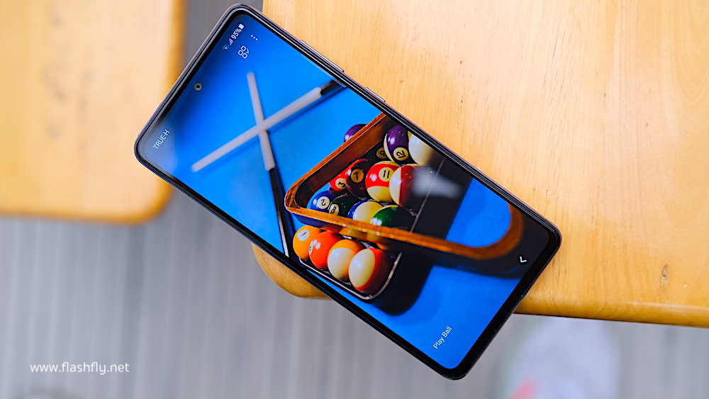 Samsung Galaxy A52s 5G ผลิตออกมาให้เลือก 3 สี ได้แก่ สีมิ้นต์ Awesome Mint, สีดำ Awesome Black และสีที่ทีมงาน @Flashfly ได้รับมารีวิวเรียกว่า สีม่วงไวโอเล็ต Awesome Violet