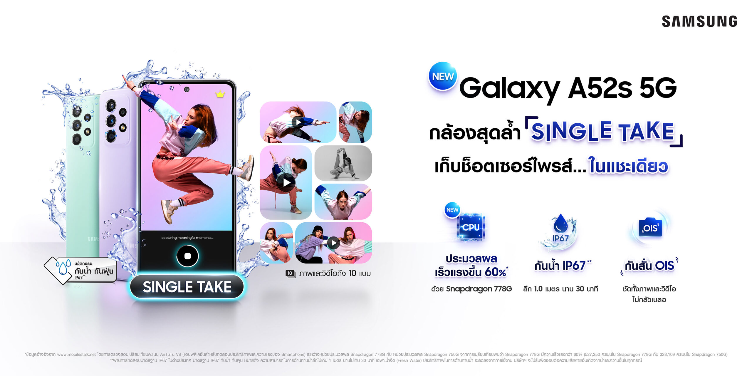 Samsung Galaxy A52s 5G เป็นสมาร์ทโฟนที่ตอบโจทย์ด้านความบันเทิงเป็นหลัก ทั้งการถ่ายภาพ อัพเดทโลกโซเชี่ยล และดูหนัง ฟังเพลง เล่นเกม ได้อย่างเต็มอิ่มด้วยชิปประมวลผลรุ่นใหม่ระดับ 6nm อีกทั้งยังมีลำโพงสเตอริโอ พร้อมระบบเสียง Dolby Atmos นอกจากนี้ยังรองรับ 5G ช่วยให้การดาวน์โหลดข้อมูลหรือสตรีมวิดีโอได้อย่างรวดเร็ว เล่นเกมออนไลน์ได้เสถียรขึ้น จึงเหมาะสำหรับคนรุ่นใหม่ที่กำลังมองหาสมาร์ทโฟนที่มีฟังก์ชั่นการใช้งานครบครัน ในราคาที่เข้าถึงได้ง่าย
