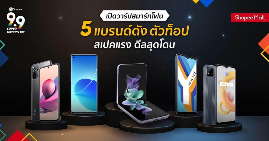 เข้าสู่ช่วงเทศกาลปลายปีกันแล้ว และเชื่อว่าอีกหนึ่งกิจกรรมที่ทุกๆคนตั้งตาคอย คงไม่พ้นมหกรรมช้อปปิ้งออนไลน์สุดยิ่งใหญ่ ที่มาพร้อม โปรโมชั่นอัดแน่นสินค้าลดราคากระหน่ำ เรียกได้ว่าทำเอานักช้อปต่างเพลิดเพลินเป็นอย่างมาก และวินาทีนี้นักช้อปชาวไทยทุกคนก็คงจะตื่นตาตื่นใจ สนุกสนาน พร้อมช้อปปิ้งไปกับ มหกรรมแคมเปญส่งท้ายปีสุดยิ่งใหญ่ในแคมเปญ Shopee 9.9 Super Shopping Day ช้อปสู้ฟัด แจกจัดเต็ม ที่ทาง ‘ช้อปปี้’ ผู้นำแพลตฟอร์มอีคอมเมิร์ซในภูมิภาคเอเชียตะวันออกเฉียงใต้และไต้หวัน จัดหนัก จัดเต็ม ตอบโจทย์ทุกไลฟ์สไตล์ของนักช้อปชาวไทยทุกคน โดยเฉพาะอย่างยิ่ง สำหรับนักช้อปสายไอที เพื่อเป็นการเฉลิมฉลองแคมเปญสุดยิ่งใหญ่ในครั้งนี้ ช้อปปี้ ชวนสาวกสายเทคเปิดวาร์ปสุดยอดสมาร์ทโฟน 5 แบรนด์ดัง ตัวท็อป สเปคแรง ดีลสุดโดน บน Shopee Mall ในแคมเปญ Shopee 9.9 Super Shopping Day แฟนๆ แกดแจ็ตสามารถเลือกช้อปได้ตั้งแต่วันนี้ – วันที่ 9 กันยายน 2564