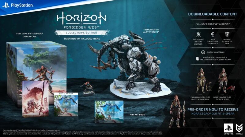 Sony PlayStation เริ่มเปิดให้ผู้เล่นสั่งซื้อล่วงหน้าเกม Horizon Forbidden West ในรูปแบบดิจิทัลดาวน์โหลดบนเครื่องเกม PlayStation 4 และ PlayStation 5 ซึ่งจะวางจำหน่ายพร้อมกันทั่วโลกในวันที่ 18 กุมภาพันธ์ 2565 รายละเอียดต่าง ๆ ในการสั่งซื้อล่วงหน้า สามารถศึกษาเพิ่มเติมได้ที่ https://blog.playstation.com/2021/09/02/20210902-horizon/