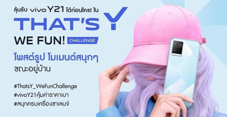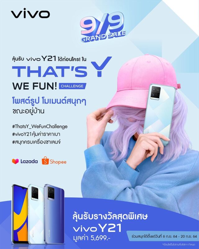 อินสตาแกรมส่วนตัว พร้อมแคปชันอธิบายภาพแบบโดนๆ และติดแฮชแท็ก #ThatsY_WeFunChallenge #vivoY21คุ้มค่าราคาเบา #สนุกครบเครื่องชาเลนจ์ เพื่อชิงรางวัลเป็นเจ้าของ vivo Y21 จำนวน 3 รางวัล เพียงแค่นี้ก็มีสิทธิ์ลุ้นรับรางวัลได้เลย สามารถร่วมกิจกรรมได้แล้ว ตั้งแต่วันนี้ ถึงวันที่ 20 กันยายน 2564
