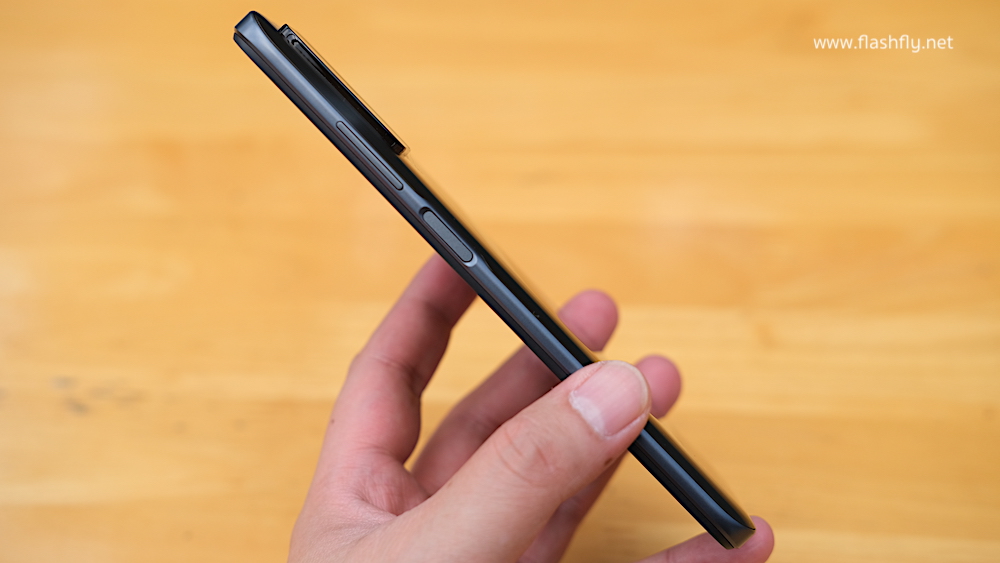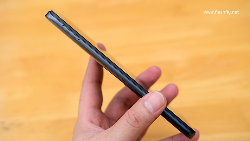 ขอบด้านข้างมีความบาง 8.92 มิลลิเมตร วางปุ่มปรับระดับเสียงไว้เหนือปุ่มเพาเวอร์ ซึ่งปุ่มเพาเวอร์ถูกใช้เป็นเซ็นเซอร์สแกนลายนิ้วมือด้วย