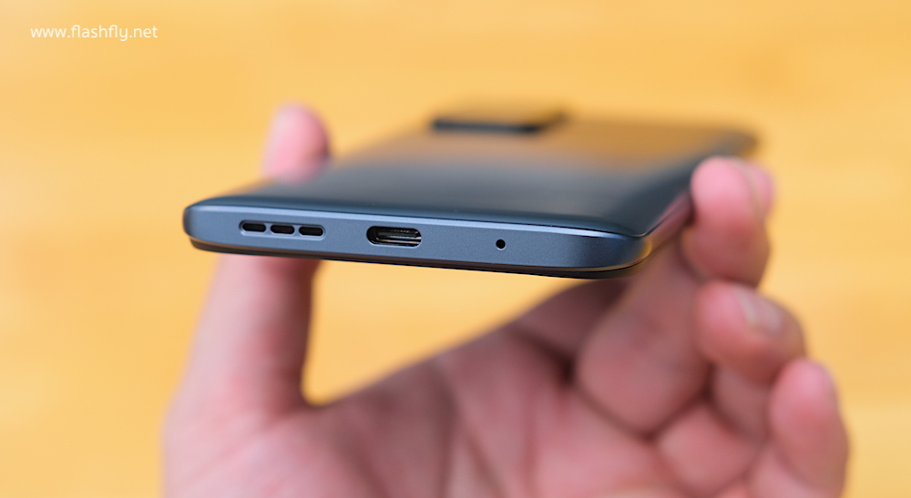 ด้านล่างมีลำโพงตัวหลัก, พอร์ตเชื่อมต่อ USB Type-C และไมโครโฟนตัวหลัก