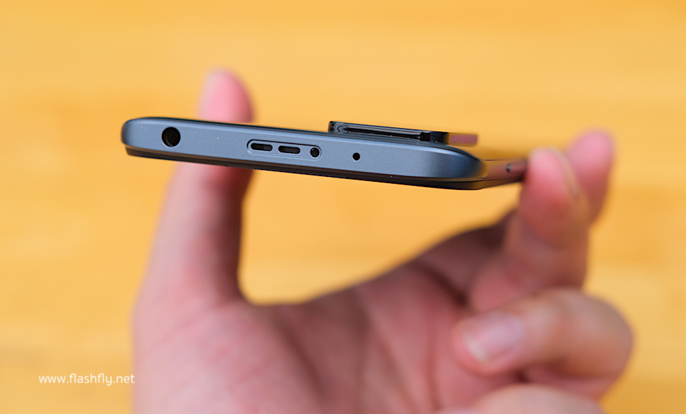อีกข้างมีถาดใส่ซิมการ์ดแบบ 3 ช่อง รองรับซิมการ์ด 2 ช่อง และอีกช่องสำหรับใส่การ์ด MicroSD