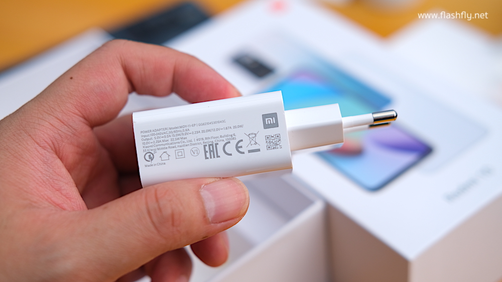 ภายในกล่องจะพบกับซองเอกสารสีขาวที่แนบเข็มจิ้มถาดใส่ซิมการ์ดมาให้ด้วย ภายในมีคู่มือแนะนำการใช้งานเบื้องต้นรวมถึงเอกสารเกี่ยวกับการรับประกัน สำหรับเคส และ ฟิล์มป้องกันหน้าจอ แถมมาให้แล้วในกล่อง ไม่ต้องซื้อเพิ่ม รวมถึงสายชาร์จ และอุปกรณ์ชาร์ตแบตเตอรี่ 22.5W (แต่สมาร์ทโฟนรองรับชาร์จเร็ว 18W)
