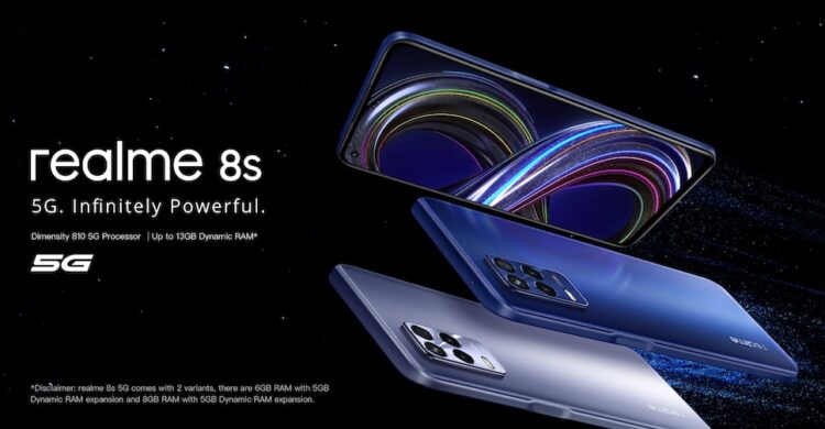 realme เปิดตัวสมาร์ทโฟน realme 8s 5G ในประเทศอินเดียอย่างทางการ มาพร้อมชิปประมวลผล MediaTek Dimensity 810 ซึ่งผลิตด้วยเทคโนโลยี 6 นาโนเมตร มีชิปโมเด็ม 5G ในตัว ความจำ RAM สูงสุด 13GB ที่เกิดจาก RAM 8GB และใช้ฟีเจอร์ Dynamic RAM Expansion ดึงความจุ ROM มาเสริม RAM ได้อีก 5GB