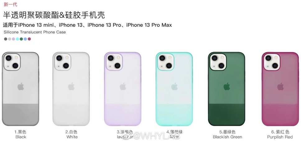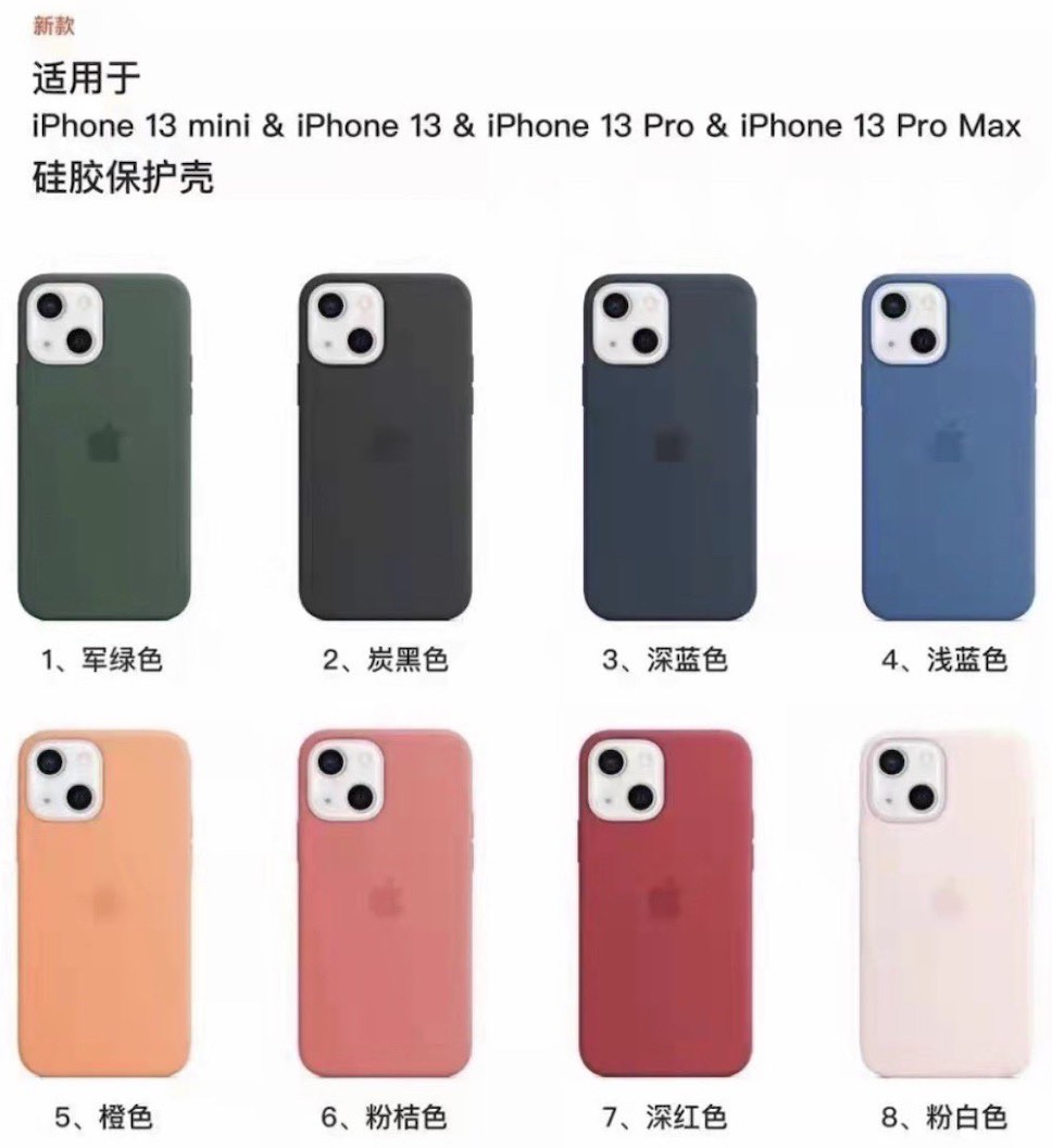 Majin Bu แชร์ภาพหลุดเคส iPhone 13 ผ่านบัญชี Twitter @MajinBuOfficial ซึ่งอาจบอกได้ว่าเคสซิลิโคนสำหรับ iPhone 13 จะมีให้เลือก 8 สี ได้แก่ สีดำ, สีเขียวเข้ม, สีน้ำเงิน, สีน้ำเงินเข้ม, สีส้ม, สีชมพู, สีแดง (PRODUCT)RED และ สีขาว