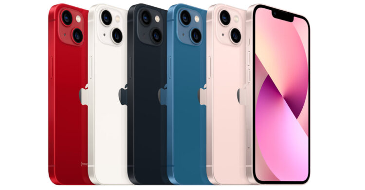iPhone 13 และ iPhone 13 mini จะวางจำหน่ายในสีชมพู, น้ำเงิน, มิดไนท์, สตาร์ไลท์ และรุ่น (PRODUCT)RED1