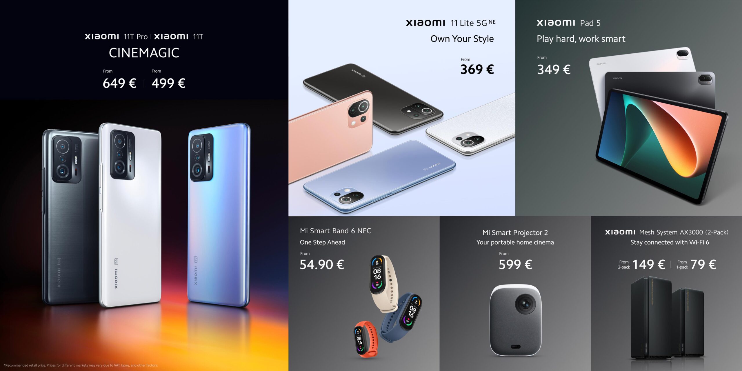 เสียวหมี่ผู้นำเทคโนโลยีระดับโลก ประกาศเปิดตัวสมาร์ทโฟนใหม่ 3 รุ่นในตระกูล Xiaomi 11 Series ได้แก่ Xiaomi 11T Pro, Xiaomi 11T ออกแบบมาเพื่อสร้างแรงบันดาลใจให้แก่ผู้ใช้งาน รวมถึง Xiaomi 11 Lite 5G NE ในโฉมใหม่อีกด้วย และยังเปิดตัว Xiaomi Pad 5 และผลิตภัณฑ์ AIoT มากมาย ได้แก่  Mi Smart Projector 2, Xiaomi Mesh System AX3000 (2-Pack) และ Mi Smart Band 6 NFC ให้ทุกคนได้ใช้ชีวิตอย่างสะดวกสบายและล้ำหน้ากว่าใคร