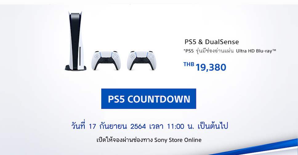 Sony Thai เตรียมเปิดให้พรีออร์เดอร์ PlayStation 5 รอบใหม่ ในวันที่ 17 กันยายน 2564 เวลาเช้า 11.00 น. เป็นต้นไป ผ่านช่องทาง Sony Store Online (สินค้ามีจำนวนจำกัด)