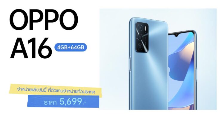 OPPO แบรนด์สมาร์ทโฟนชั้นนำในไทย พร้อมวางจำหน่ายสมาร์ทโฟนน้องเล็กรุ่นอัปเกรด “OPPO A16 รุ่น RAM 4GB + ROM 64GB” พร้อมตอบโจทย์ทุกสายเอ็นเตอร์เทนเมนท์ด้วยความเร็วแรงที่มากยิ่งขึ้น โดยสามารถเป็นเจ้าของได้แล้ววันนี้ ในราคาเพียง 5,699 บาท ที่ OPPO Brand Shop ทุกสาขา และตัวแทนจำหน่ายทั่วประเทศ
