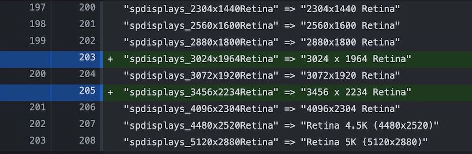 ระบบปฏิบัติการ macOS Monterey ถูกปล่อยเวอร์ชั่น Beta ออกมาเป็นครั้งที่ 7 แล้ว ซึ่งพบว่าในแอป System Information มีการอ้างถึงความละเอียดจอแสดงผลใหม่ ได้แก่ 3456 x 2234 Retina และ 3024 x 1964 Retina ซึ่งความละเอียดทั้ง 2 แบบ ไม่สอดคล้องกับความละเอียดของจอแสดงผลของผลิตภัณฑ์ Apple ในปัจจุบันรวมถึงก่อนหน้านี้ จึงเป็นไปได้ที่ ความละเอียดทั้ง 2 แบบ อาจเป็นความละเอียดหน้าจอของ MacBook Pro รุ่นใหม่