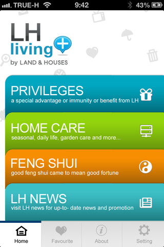 แอพลิเคชั่นที่จะทำให้ชีวิตของคุณสบายแบบ ++ พบ Home Tips ดูแลบ้านตามฤดูการจากกูรู LH เสริมความเฮงด้วยเทคนิคการจัดบ้านให้ถูกต้องตามหลักฮวงจุ้ย พร้อมรับสิทธิประโยชน์และส่วนลดกับ LH Privilege เลือกร้านอาหารรสเด็ดที่ LH คัดมาพิเศษเพื่อคุณ ให้คุณเช๊ครายชื่อร้านค้าที่ร่วมรายการ, รายละเอียดส่วนลด, ตำแหน่งนำทางไปยังร้านค้าผ่านระบบ GPS, เบอร์โทรติดต่อ และแจ้งส่วนลดทันทีเมื่อเข้าใกล้ร้านค้าที่ร่วมรายการผ่านระบบ Notification ของ LH Living+