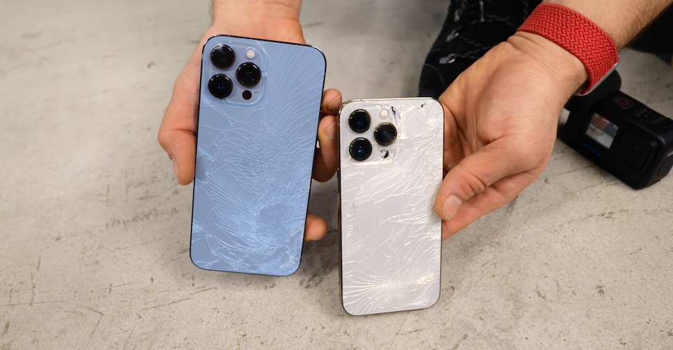 Filip Koroy เพิ่มความสูงขึ้นมาที่ระดับศีรษะ และลองปล่อย iPhone 13 Pro และ iPhone 13 Pro Max ลงมา 3 ครั้งเช่นเดียวกับระดับเอว ซึ่งครั้งนี้ผมว่าส่วนขอบมุมมีร่องรอยความเสียหายอย่างชัดเจน ขณะที่จอแสดงผลของ iPhone 13 Pro มีการแตกร้าว แต่หน้าจอของ iPhone 13 Pro Max ยังอยู่ในสภาพปกติ