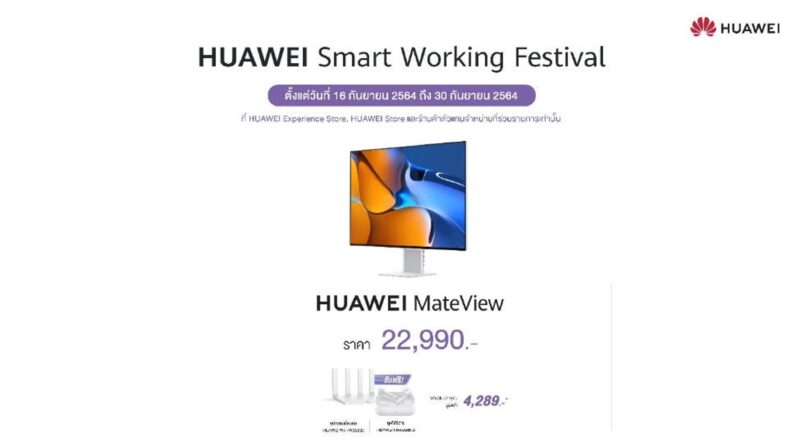 หัวเว่ยสนับสนุนให้คนทำงานอย่างสมาร์ทด้วยดีไวซ์อัจฉริยะ สร้างสมดุลระหว่างการทำงานและการใช้ชีวิตได้อย่างลงตัวกับโอกาสสุดท้ายของโปรโมชันพิเศษในช่วงเทศกาล HUAWEI Smart Working Festival เมื่อซื้อ HUAWEI MateView ราคา 22,990 บาท รับไปเลยของสมนาคุณเป็นอุปกรณ์เชื่อมต่อ HUAWEI WiFi WS52000 และ หูฟังไร้สาย HUAWEI FreeBuds 3i มูลค่ารวม 4,289 บาท ระหว่างวันที่ 16 กันยายน 2564 – 30 กันยายน 2564 นี้เท่านั้น ที่ HUAWEI Experience Store, HUAWEI Store และร้านค้าที่ร่วมรายการเท่านั้น นอกจากนี้ยังมีสินค้าไอทีอื่นๆ ที่จะมาปฎิวัติการทำงานของคุณให้สมาร์ทยิ่งกว่าใคร โดยสามารถดูรายละเอียดเพิ่มเติมได้ที่นี่และผ่านช่องทางออนไลน์แพลตฟอร์มต่างๆ ทั้ง เฟซบุ๊กเพจ Huawei Mobile TH | Line | Shopee | Lazada