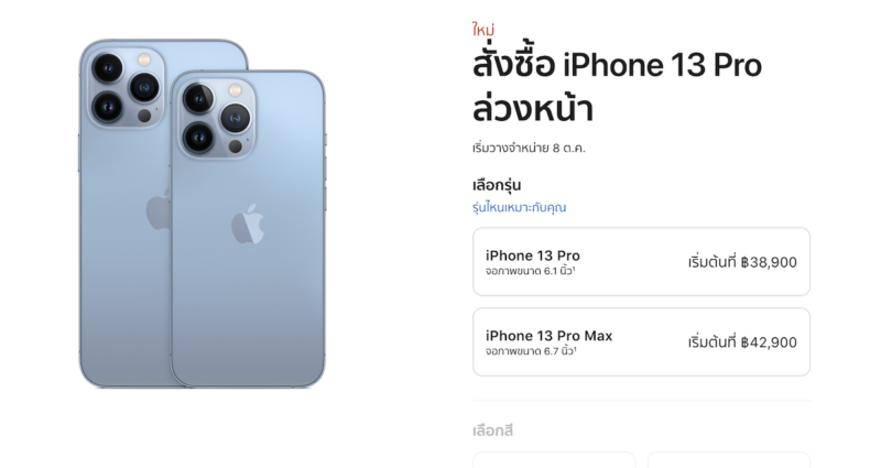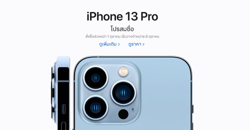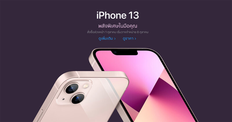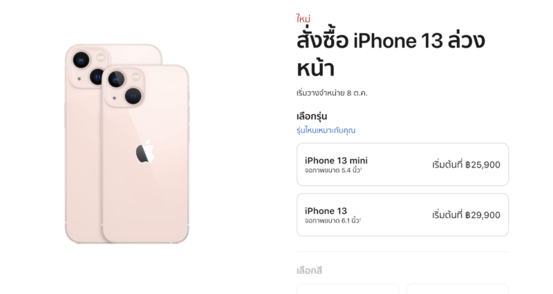 หลังจากที่เมื่อคืนนี้ทางค่ายมือถือยักษ์ใหญ่ทั้ง 3 ค่ายได้เปิดให้สั่งซื้อล่วงหน้าไปก่อนหน้านี้แล้ว วันนี้ Apple เปิดให้สั่งซื้อ iPhone 13 mini, iPhone 13, iPhone 13 Pro และ iPhone 13 Pro Max ไอโฟนรุ่นใหม่ของปี 2021 ในประเทศไทยอย่างเป็นทางการแล้ว โดยมีราคาเริ่มต้น 25,900 บาท