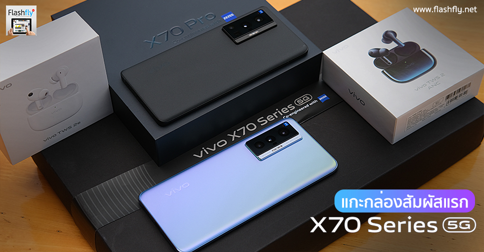 หลังจากเปิดตัวทางการเมื่อช่วงต้นเดือนกันยายนที่ผ่านมา vivo ก็พร้อมทำตลาดสมาร์ทโฟนระดับพรีเมียมรุ่นใหม่ล่าสุด vivo X70 5G และ vivo X70 Pro 5G ในประเทศไทยแล้ว โดยทั้งคู่ได้มีจุดเด่นที่ระบบกล้องหลัง ด้วยประสิทธิภาพของเลนส์ที่พัฒนาด้านวิศวกรรมร่วมกับ ZEISS แบรนด์ผู้ผลิตเลนส์กล้องชั้นนำระดับโลก พร้อมเทคโนโลยี Gimbal Stabilization 3.0 ที่ได้รับการปรับปรุงใหม่ ถูกใจคนรักการถ่ายภาพอย่างแน่นอน แต่ก่อนที่จะเจาลึกลงไปมากกว่านี้ ทีมงาน @Flashfly ขอเริ่มต้นด้วยการแกะกล่องพร้อมพรีวิวให้ชมในเบื้องต้นก่อน เพื่อได้มีเวลาทำความรู้จักกับสมาร์ทโฟน vivo X70 series ให้มากขึ้นกว่านี้