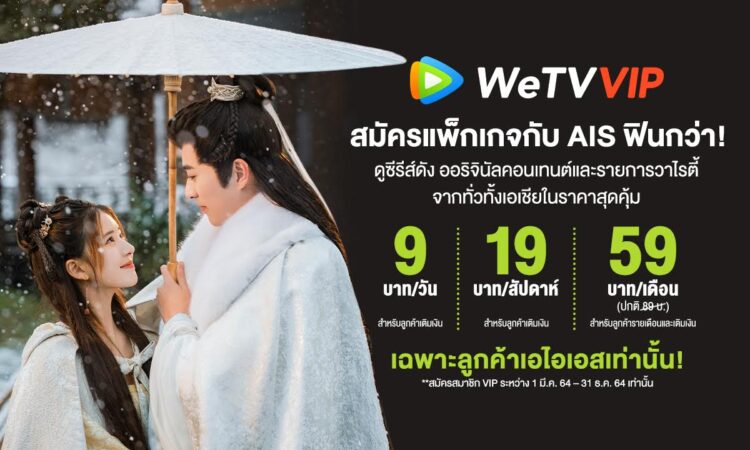 WeTV มอบสิทธิ์ชม WeTV VIP ฟรี! ไม่มีค่าใช้จ่ายเพิ่มเติม นานสูงสุด 12 เดือน สำหรับลูกค้าเอไอเอส และเอไอเอส