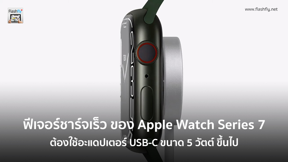 สำหรับการใช้งานฟีเจอร์ชาร์จเร็วของ Apple Watch Series 7 นั้นจะต้องใช้งานกับใช้สายชาร์จแม่เหล็ก USB-C (แถมมาในกล่อง) กับอะแดปเตอร์ (ต้องซื้อแยก) ที่ทาง Apple กำหนด ดังนี้