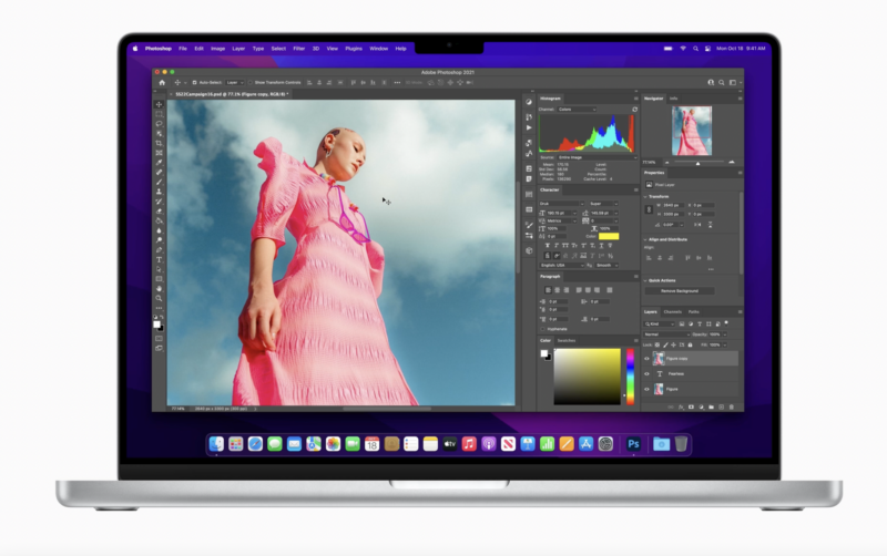 macOS Monterey สร้างมาเพื่อปลดปล่อยพลังของชิป M1 Pro และ M1 Max ทั้งในด้านประสิทธิภาพอันเหนือชั้น ความสามารถระดับโปรที่พร้อมสร้างปรากฏการณ์ รวมถึงแบตเตอรี่ที่ใช้งานได้นานเหลือเชื่อ และการออกแบบ Monterey มาเพื่อ Apple Silicon ก็ช่วยให้ Mac พร้อมทำงานในทันทีหลังจากพักเครื่อง ในขณะที่ทั้งระบบก็รวดเร็วและตอบสนองฉับไว นอกจากนี้ยังมีเทคโนโลยีสำหรับนักพัฒนาอย่าง Metal ที่ทำให้แอปรีดประสิทธิภาพจากชิปใหม่ได้เต็มที่ ส่วน Core ML ก็ผ่านการปรับแต่งมาอย่างลงตัวเพื่อใช้ประโยชน์จาก Neural Engine อันทรงพลัง ส่งผลให้โมเดลการเรียนรู้ของระบบทำงานได้เร็วขึ้น และมีการใช้ข้อมูลเวิร์กโหลดของแอประดับโปรเพื่อช่วยให้ macOS สามารถมอบหมายงานแบบหลายเธรดไปยังคอร์ CPU ได้อย่างเหมาะสมเพื่อประสิทธิภาพสูงสุด พร้อมด้วยคุณสมบัติการจัดการพลังงานอันล้ำสมัยที่คอยจัดสรรงานระหว่างคอร์ประสิทธิภาพและคอร์ประหยัดพลังงานอย่างชาญฉลาดเพื่อที่สุดของความเร็วและระยะเวลาการใช้งานแบตเตอรี แอนิเมชั่น MacBook Pro พร้อม Photoshopแอปและปลั๊กอิน Universal มากกว่า 10,000 รายการ รวมถึง Adobe Photoshop (ด้านบน) พร้อมแล้วที่จะใช้ประโยชน์จากชิป M1 Pro และ M1 Max อันทรงพลังการผนึกกำลังระหว่าง macOS กับชิป M1 Pro, M1 Pro และ M1 Max ยังทำให้การรักษาความปลอดภัยอยู่ในชั้นแนวหน้าของอุตสาหกรรม ไม่ว่าจะเป็นระบบการบูทที่ปลอดภัยโดยใช้ฮาร์ดแวร์ยืนยัน เทคโนโลยีป้องกันการเจาะช่องโหว่ขณะรันไทม์ รวมถึงการเข้ารหัสแบบอินไลน์ที่รวดเร็วสำหรับไฟล์ ยิ่งกว่านั้นแอป Mac ของ Apple ทั้งหมดยังได้รับการปรับแต่งมาอย่างลงตัวและสามารถทำงานได้เลยบน Apple Silicon ทั้งยังมีแอปและปลั๊กอิน Universal ให้ใช้อีกกว่า 10,000 รายการ ส่วนแอป Mac ที่ยังไม่ได้รับการอัปเดตเป็นแบบ Universal ก็สามารถทำงานได้อย่างราบรื่นโดยอาศัยเทคโนโลยี Rosetta 2 ของ Apple และผู้ใช้ก็สามารถใช้แอป iPhone และ iPad บน Mac ได้โดยตรง ซึ่งช่วยเปิดโลกของความเป็นไปได้ใหม่ๆ อีกมากมาย