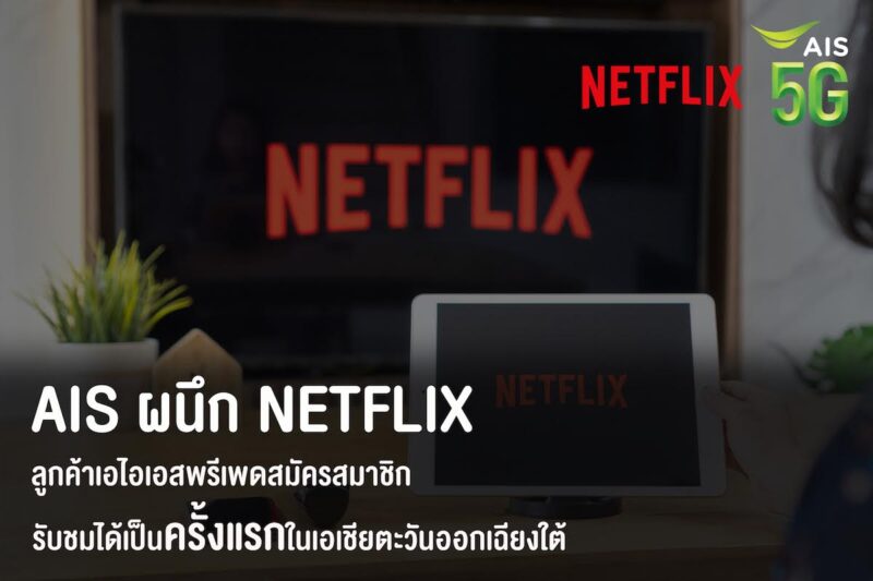 AIS และ Netflix สานต่อความร่วมมือนำความบันเทิงไร้ขีดจำกัดให้ลูกค้าเอไอเอสในระบบเติมเงิน (พรีเพด) สามารถสมัครสมาชิกและรับชม Netflix บน AIS ถือเป็นการส่งตรงประสบการณ์ความบันเทิงสตรีมมิ่งให้กับลูกค้าพรีเพดเป็นครั้งแรกในเอเชียตะวันออกเฉียงใต้