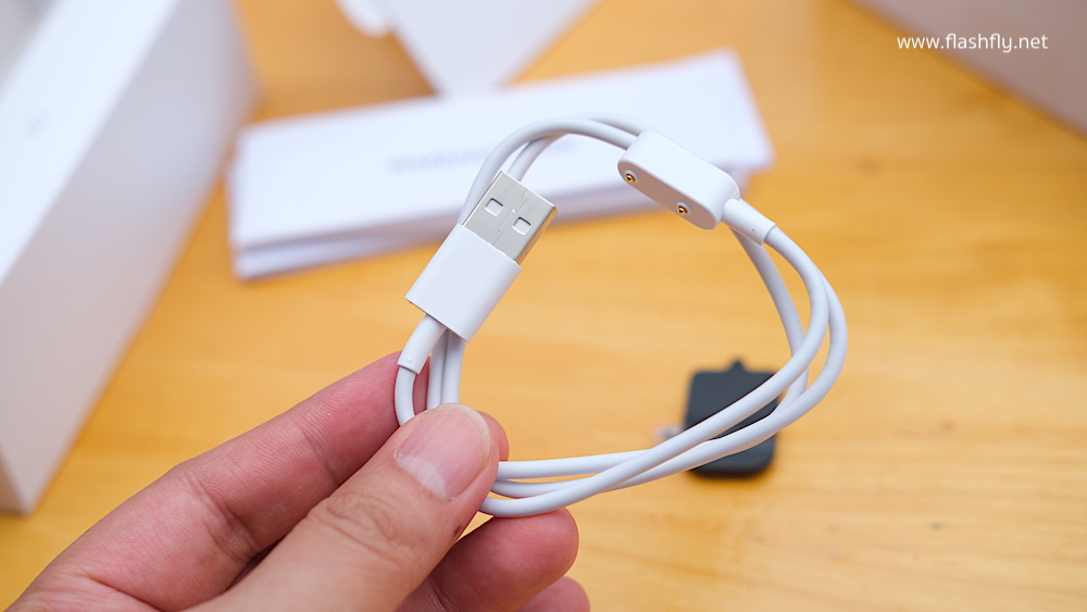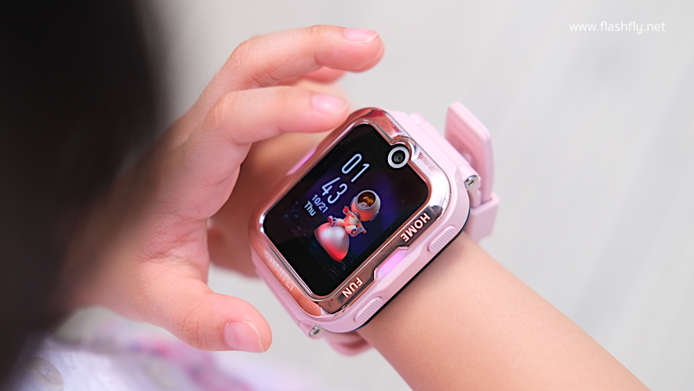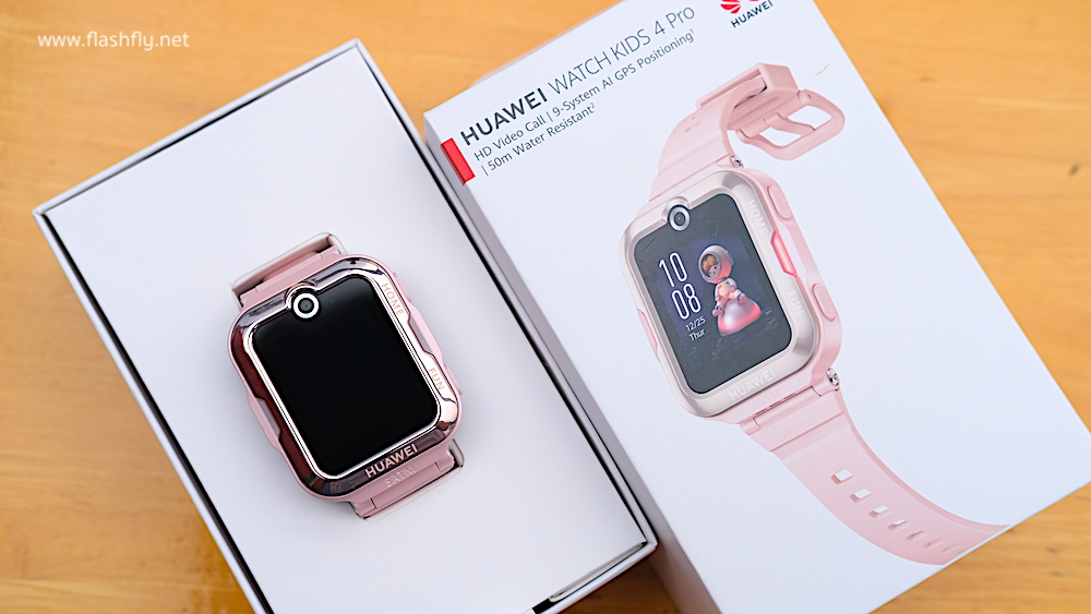 เมื่อเปิดกล่องออกมาจะพบกับสมาร์ทวอทช์เป็นอย่างแรก โดยทีมงาน @Flashfly ได้รับสีชมพูมารีวิว และยังมีสีน้ำเงินให้เลือกด้วย นอกจากนี้ ภายในกล่องยังแถมอุปกรณ์ช่วยคลายสกรูถาดใส่ซิมการ์ด พร้อมแท่นชาร์จพร้อมสายชาร์จ, คู่มือการใช้งาน, ข้อมูลความปลอดภัย และ ใบรับประกันสินค้า