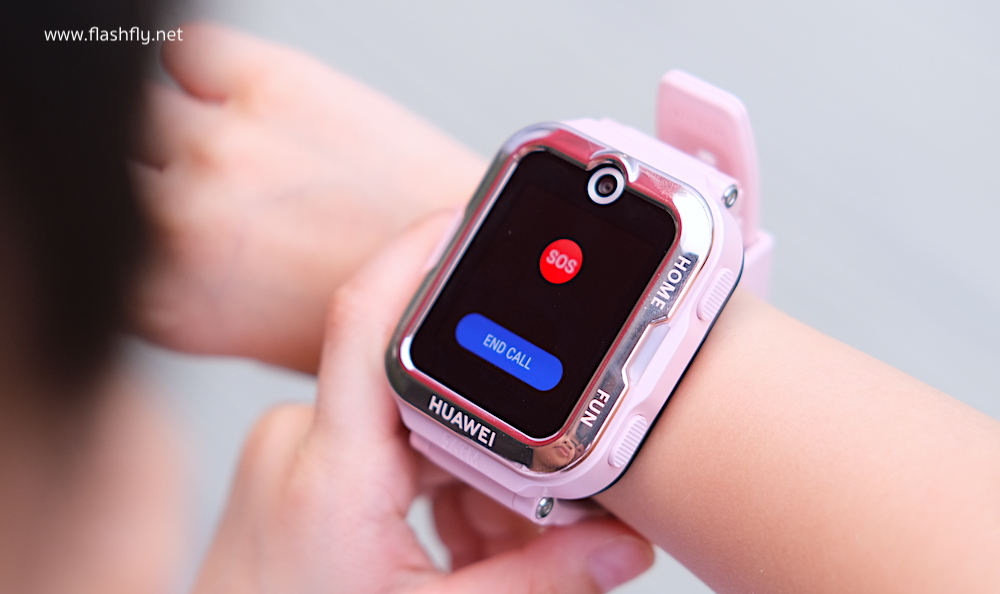 HUAWEI WATCH KIDS 4 Pro มาพร้อมฟีเจอร์ One-Step SOS Call สามารถโทรออกพร้อมส่งภาพไปยังหมายเลขฉุกเฉินได้อย่างรวดเร็ว เมื่อผู้สวมใส่รู้สึกไม่ปลอดภัยหรือเกิดเหตุฉุกเฉิน เพียงกดปุ่ม FUN ค้างไว้ 5 วินาที HUAWEI WATCH KIDS 4 Pro ก็จะจะโทรออก พร้อมถ่ายภาพส่งไปยังผู้ปกครองทันที โดยกล้องหน้าให้มุมมองกว้าง 85 องศา ช่วยให้มองเห็นสถานที่ของเด็กๆ ได้กว้างขึ้น