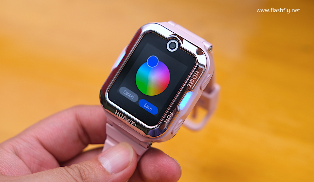 HUAWEI WATCH KIDS 4 Pro ติดตั้งไฟ LED ไว้ที่ขอบหน้าปัดทั้ง 2 ข้าง สามารถเรืองแสงในความมืดเพื่อเพิ่มความปลอดภัยในเวลากลางคืน โดยแสงไฟจะกะพริบตามจังหวะการก้าวเดินของผู้สวมใส่ และยังสามารถกระพริบเพื่อแจ้งเตือนต่างๆ ไม่ว่าจะเป็น การปลุก, การเพิ่มเพื่อน รวมไปถึงการแข่งขันกิจกรรมต่างๆ กับเพื่อนๆ ที่สวมใส่ HUAWEI WATCH KIDS 4 Pro เช่นกัน