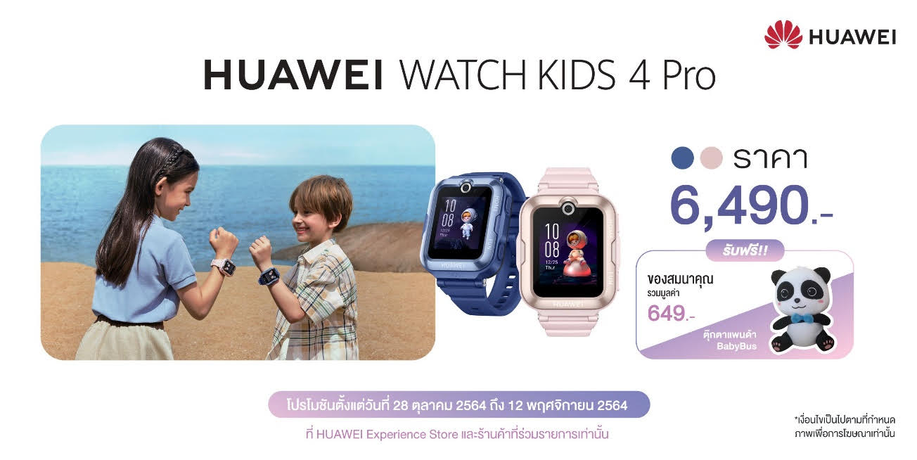 โดย HUAWEI WATCH Kids 4 Pro รองรับการใช้งานกับสมาร์ทโฟนหัวเว่ยระบบปฏิบัติการ EMUI 10.1 และ iOS 9.0 ขึ้นไปเท่านั้น มีให้เลือก 2 สีด้วยกันคือ สีน้ำเงินและสีชมพู โดยพร้อมให้เป็นเจ้าของแล้วตั้งแต่วันที่ 28 ตุลาคม 2564 เป็นต้นไป ในราคาเพียง 6,490 บาท พร้อมของสมนาคุณตุ๊กตา BabyBus มูลค่า 649 บาท เมื่อสั่งซื้อตั้งแต่วันที่ 28 ตุลาคม 2564 ถึง 12 พฤศจิกายน 2564 ทาง HUAWEI Experience Store สามารถค้นหาข้อมูลเพิ่มเติมเกี่ยวกับ HUAWEI WATCH KIDS 4 Pro ได้ที่นี่