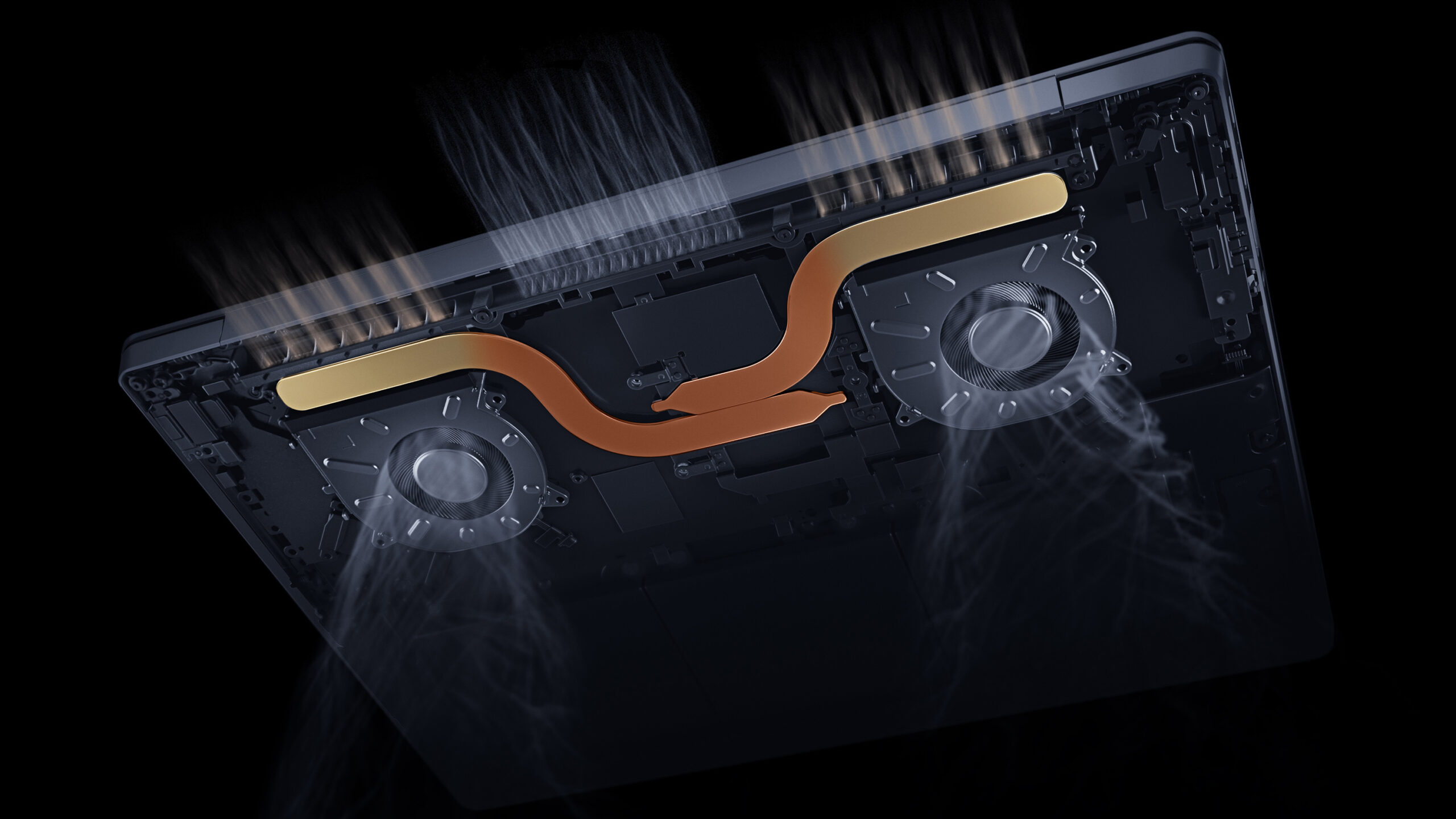 สุงสุด 16 GB LPDDR4x แบบ dual-channel และความจุมากสุดถึง 1 TB ให้สามารถจัดเก็บและเปิดขึ้นมาเล่นหรือใช้งานได้โดยไม่เกิดความหน่วง หลายคนอาจจะมองว่าถ้าเต็มที่ขนาดนี้เครื่องต้องร้อนแน่ แต่หัวเว่ยก็ได้หาวิธีระบายความร้อนที่ดียิ่งขึ้น ประกอบด้วยพัดลม HUAWEI SharkFin รูปตัว S บางแบบครีบฉลามคู่ ดึงอากาศเข้าสู่ตัวเครื่องดีขึ้น 25% แผงระบายความร้อนทองแดง พร้อมช่องระบายอากาศเพิ่มเติมบริเวณบานพับ นอกจากนั้นในเรื่องของพลังงาน HUAWEI MateBook 14s ที่มีแบตเตอรี่ 60 W เล่นวิดีโอ 1080p ได้ถึง 13 ชั่วโมง ก็ยังรองรับ HUAWEI SuperCharge 65W อีกด้วย