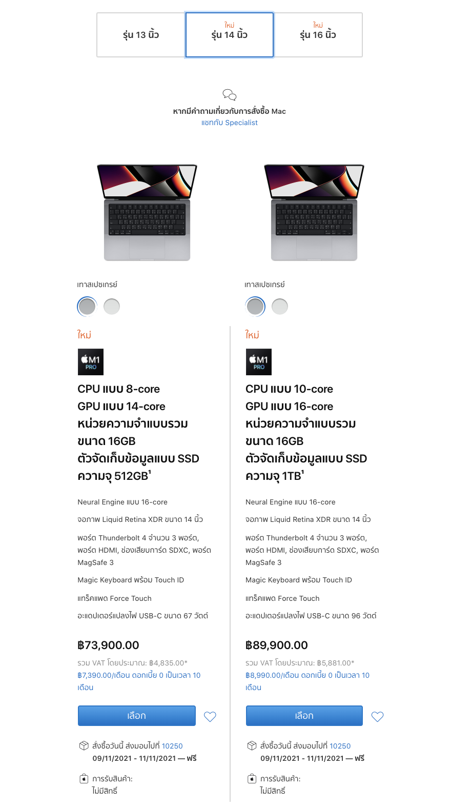 MacBook Pro รุ่น 14 นิ้ว ราคาเริ่มต้น 73,900 บาท