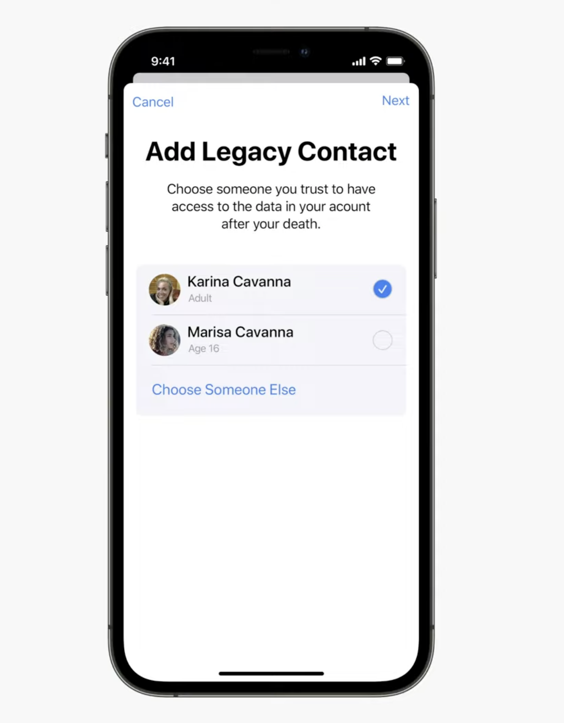 การตั้งค่า “Digital Legacy”: “Digital Legacy” จะช่วยให้คุณสามารถระบุผู้คนเป็น “Legacy Contact” ได้สูงสุด 5 คน ดังนั้นคุณจึงสามารถส่งต่อข้อมูลและข้อมูลส่วนตัวที่จัดเก็บไว้ใน iCloud ได้เมื่อคุณเสียชีวิต เราเก็บข้อมูลมากมายในชีวิตไว้ใน iPhone และ iCloud ดังนั้นจึงเป็นเรื่องสำคัญที่คุณและคนที่คุณรักจะสามารถเข้าถึงข้อมูลนี้ได้ ไม่ว่าจะเป็นความทรงจำล้ำค่าอย่างรูปภาพ เอกสาร หรือแม้แต่รายการสินค้าที่ซื้อ