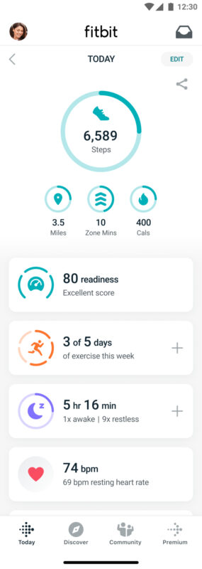 Daily Readiness Score ฟีเจอร์สำหรับสมาชิก Fitbit Premium จะช่วยให้คุณสามารถเข้าถึงข้อมูลเชิงลึกเรื่องสุขภาพ เช่น ข้อมูลการทำกิจกรรม, ระดับการเต้นของหัวใจ (HRV) ตลอดช่วงระยะเวลาในการนอนหลับ เพื่อช่วยเตือนว่าคุณควรจะออกกำลังกายหรือควรพักฟื้นร่างกาย