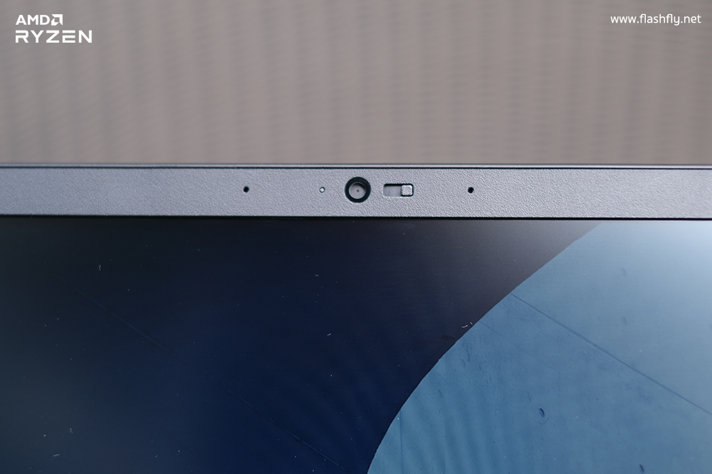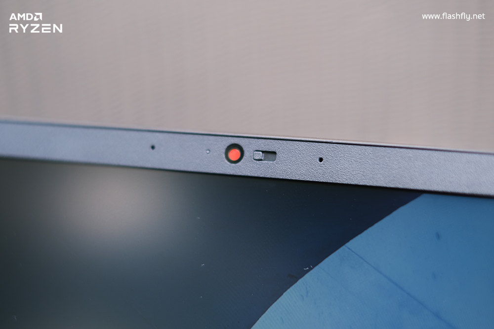 ขอบจอด้านบนมีการติดตั้งกล้อง Webcam ความละเอียด 720 HD วางอยู่ตรงกลาง ด้านข้างจะเป็นไมโครโฟน 2 ตัว พร้อมกับ Webcam Shield สามารถเลื่อนปิดกล้องเพื่อป้องกันการสอดแนมหรือถูกแฮกเข้ามาใช้งานกล้อง (ถึงแม้จะเป็นเรื่องยากที่จะเกิดขึ้นก็ตาม) หรืออาจจะเผลอทำการเปิดกล้องโดยไม่ได้ตั้งใจ
