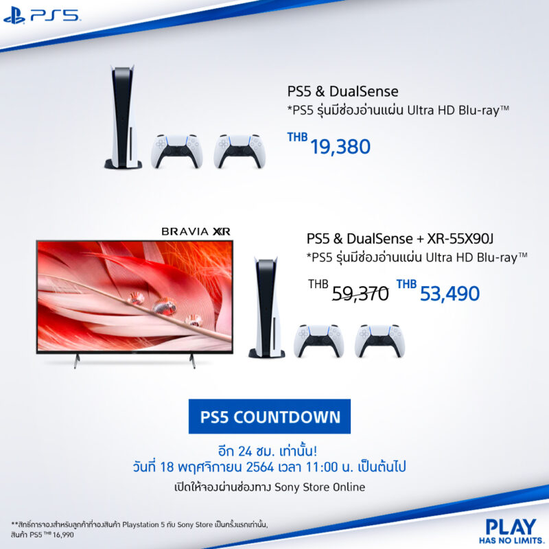 Sony Thai เปิดให้พรีออร์เดอร์ล่วงหน้า PlayStation 5 อีกครั้ง โดยจะเปิดในวันที่ วันที่ 19 พฤศจิกายน 2564 เวลา 11.00 น. เป็นต้นไป โดยมีราคาเริ่มต้น 16,990 บาท