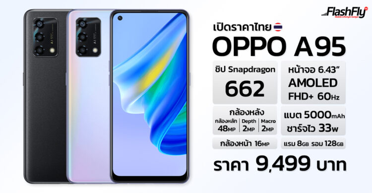 OPPO A95 เปิดราคาไทย ชิป SD662 จอ AMOLED กล้อง 48MP แบต 5000mAh ชาร์จไว 33w ราคา 9,499 บาท
