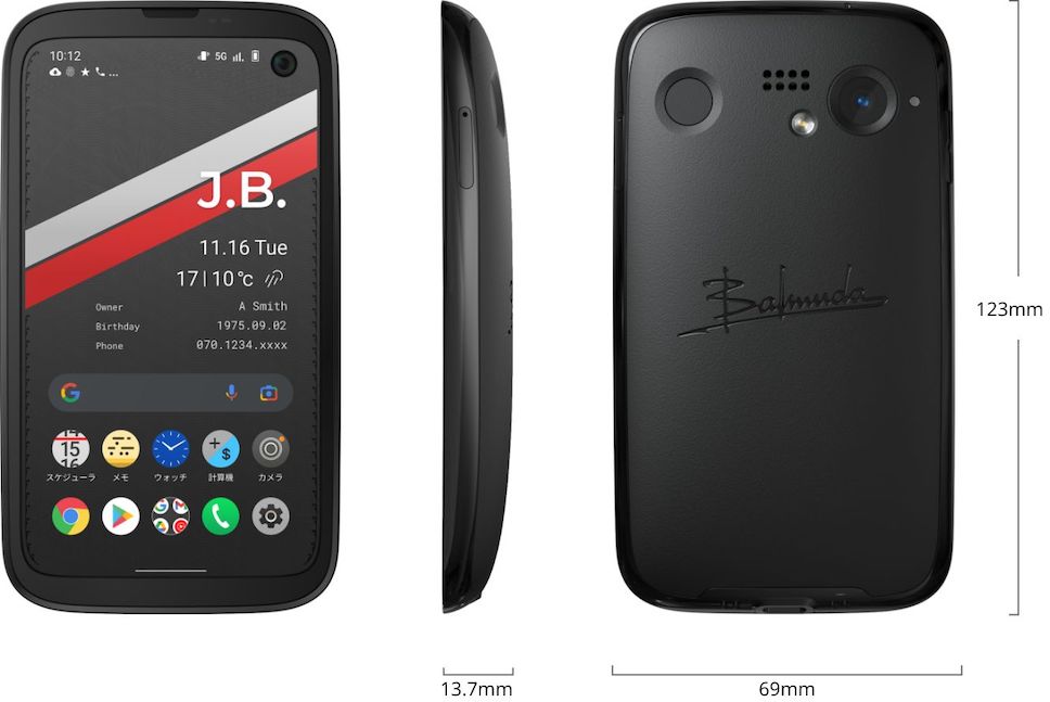Balmuda Phone เกิิดจากความร่วมมือกับ Kyocera มาพร้อมจอแสดงผล Full HD 1080p ขนาด 4.9 นิ้ว กล้องหน้า 8 ล้านพิกเซล กล้องหลัง 48 ล้านพิกเซล ทำงานบนพื้นฐาน Android 11 ใช้ชิปประมวลผล Qualcomm Snapdragon 765 ความจำ RAM 6GB จับคู่กับ ROM 128GB แบตเตอรี่ 2,500mAh รองรับการเชื่อมต่อ NFC และทนต่อน้ำ-ฝุ่นในระดับ IP44
