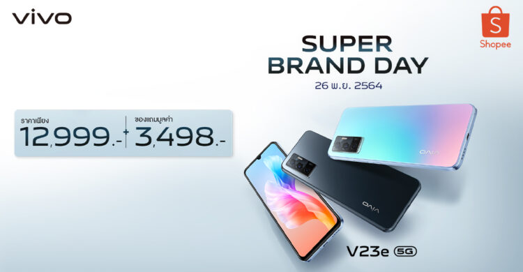 vivo แบรนด์สมาร์ตโฟนชั้นนำระดับโลก ร่วมกับShopee ผู้นำแพลตฟอร์ม อีคอมเมิร์ซชื่อดังในภูมิภาคเอเชียตะวันออกเฉียงใต้และไต้หวัน เตรียมส่งมอบโปรโมชันสุดพิเศษส่งท้ายเดือนพฤศจิกายนกับแคมเปญ ‘vivo Super Brand Day’ พบกับส่วนลดสำหรับเป็นเจ้าของสมาร์ตโฟนและอุปกรณ์เสริมจาก vivo ลดราคากระหน่ำสูงสุดถึง 50% พร้อมโค้ดส่วนลด 1,100 บาท และ Coin Cash back 800 coins เฉพาะวันที่ 26 พฤศจิกายน 2564 นี้ ที่ vivo Thailand Official Store บน Shopee เท่านั้น