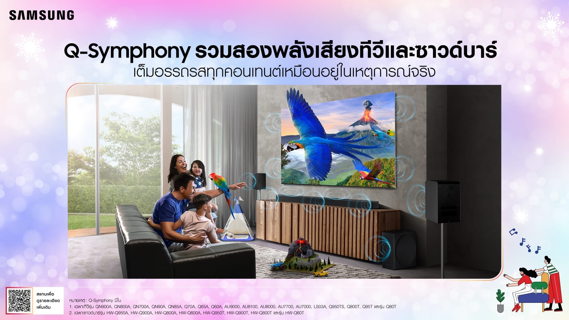ผสานสุดยอดเทคโนโลยีเสียงในทีวีและซาวด์บาร์ได้อย่างสมบูรณ์ด้วย Q-Symphony