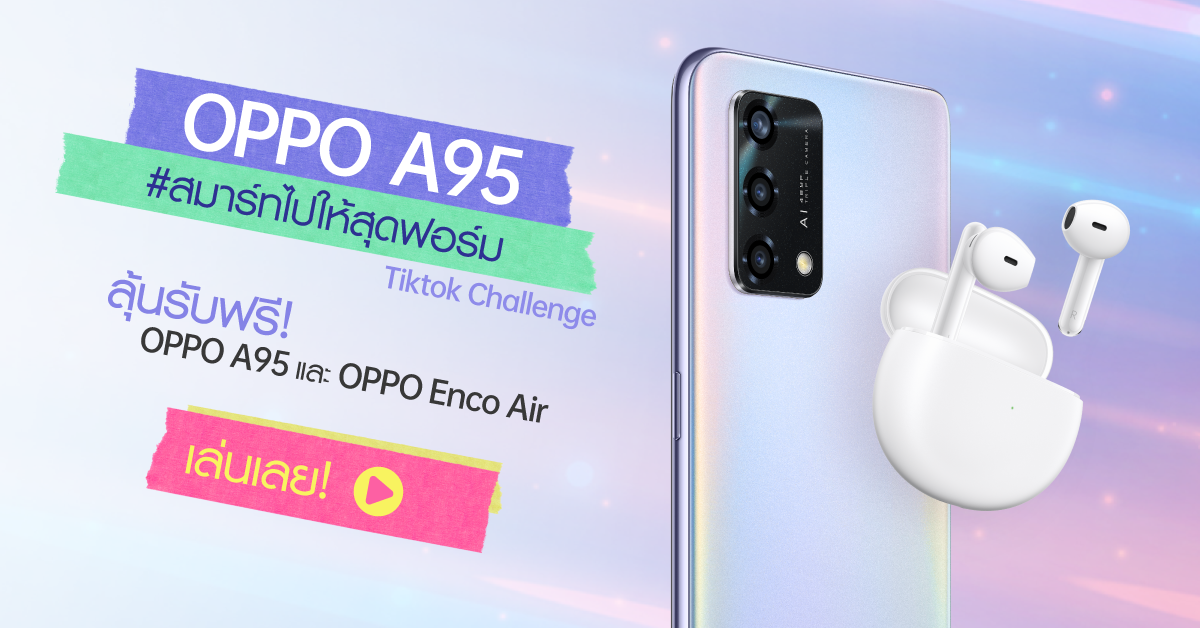 OPPO ท้าชาว Tiktok แดนซ์ไปให้สุด! ออกสเต็ปสุดมัน ในชาเลนจ์ #สมาร์ทไปให้สุดฟอร์ม ลุ้นรับ OPPO A95 รุ่นใหม่ และ OPPO Enco Air ฟรี ถึง 12 ธันวาคมนี้!