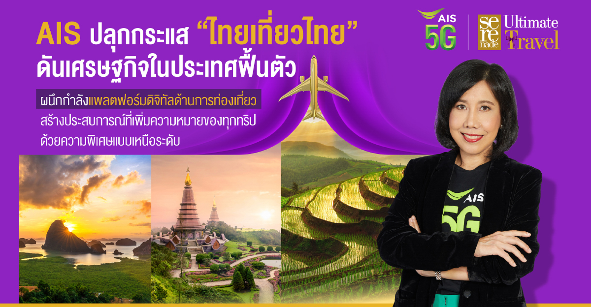 ภายหลังจากที่มีการคลายมาตรการล็อคดาวน์ ทำให้ภาคธุรกิจเริ่มกลับมาคึกคักอีกครั้งเพื่อกระตุ้นอารมณ์ในการจับจ่ายของผู้บริโภค โดยเฉพาะในภาคอุตสาหกรรมการท่องเที่ยวที่ได้รับผลกระทบจากสถานการณ์การแพร่ระบาดในครั้งนี้เป็นอย่างมาก AIS ขอเป็นส่วนหนึ่งในการเดินหน้าขับเคลื่อนการท่องเที่ยว ร่วมปลุกกระแส “ไทยเที่ยวไทย” ผลักดันเศรษฐกิจให้เกิดการหมุนเวียนในประเทศ เป็นฟันเฟืองสำคัญในการช่วยเหลือผู้ประกอบการและแรงงานในอุตสาหกรรมการท่องเที่ยว ด้วยการจับมือกับแพลตฟอร์มดิจิทัลด้านการท่องเที่ยว ร่วมสร้างประสบการณ์ใหม่ของการท่องเที่ยวแบบ One Stop Service บนแอป myAIS ตั้งแต่การจองตั๋วการเดินทาง ที่พักระดับพรีเมียม การตรวจ RTPCR ก่อนการเดินทางเพื่อความปลอดภัยในการท่องเที่ยววิถีใหม่ ไปจนถึงบริการ รถลิมูซีน, รถเช่า, ห้องรับรองพิเศษและกาแฟฟรี ณ สนามบินชั้นนำทั่วประเทศ ด้วยแพ็คเกจสำหรับลูกค้า AIS Serenade ที่จะทำให้ทุกทริปของลูกค้ามีความหมายและพบกับความประทับใจตลอดการเดินทาง