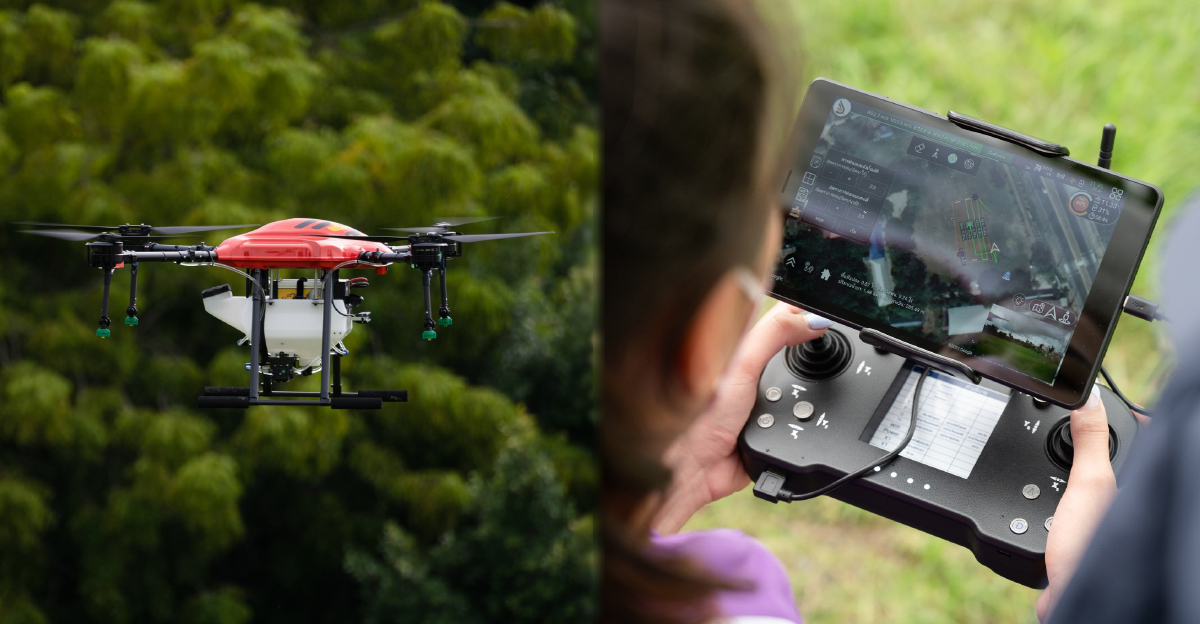 ทั้งนี้ ซัมซุงได้สนับสนุนสมาร์ทดีไวซ์ ประกอบด้วย แท็บเล็ตและสมาร์ทโฟน เพื่อใช้ควบคู่ไปกับโซลูชันการเกษตรอัจฉริยะของวรุณาสำหรับเป็นสื่อการสอนในครั้งนี้ ซึ่งสมาร์ทดีไวซ์เป็นเครื่องมือสำคัญในการประกอบอาชีพนักบินโดรนเกษตร เพราะนอกจากการใช้แทนรีโมทเพื่อควบคุมทิศทางในบางสถานการณ์เเล้ว การมีสมาร์ทดีไวซ์ที่มีขนาดหน้าจอที่เหมาะสมเเละมีระบบประมวลผลที่รวดเร็ว จะช่วยเพิ่มประสิทธิภาพในการทำงานของนักบินโดรนเกษตรให้ดียิ่งขึ้น เช่น การวาดตำแหน่งแปลง การวางแผนเเละตั้งค่าต่างๆ ก่อนขึ้นบิน การติดตามสถานะขณะทำการบิน รวมถึงสามารถแก้ปัญหาเฉพาะหน้าได้อย่างทันท่วงที เพื่อความปลอดภัยเเละความรวดเร็วในการปฏิบัติงาน ซึ่งปัจจัยเหล่านี้มีผลต่อคุณภาพงานฉีดพ่นเเละการรับรู้รายได้ของนักบินโดรนเกษตร