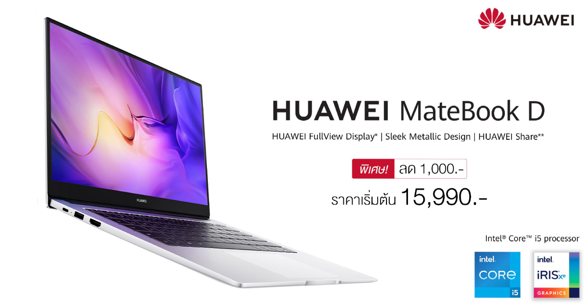 HUAWEI MateBook D 14 มาพร้อมชิปเซ็ต 10th Gen Intel® CoreTM i3 processor วางจำหน่ายในราคาเพียง 16,990 บาท จากราคาปกติ 17,990 บาท