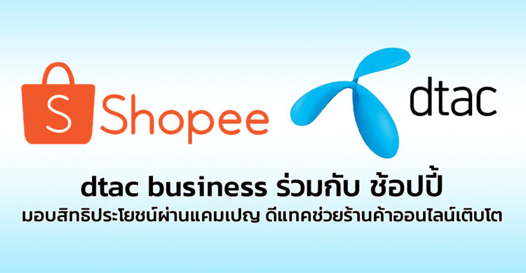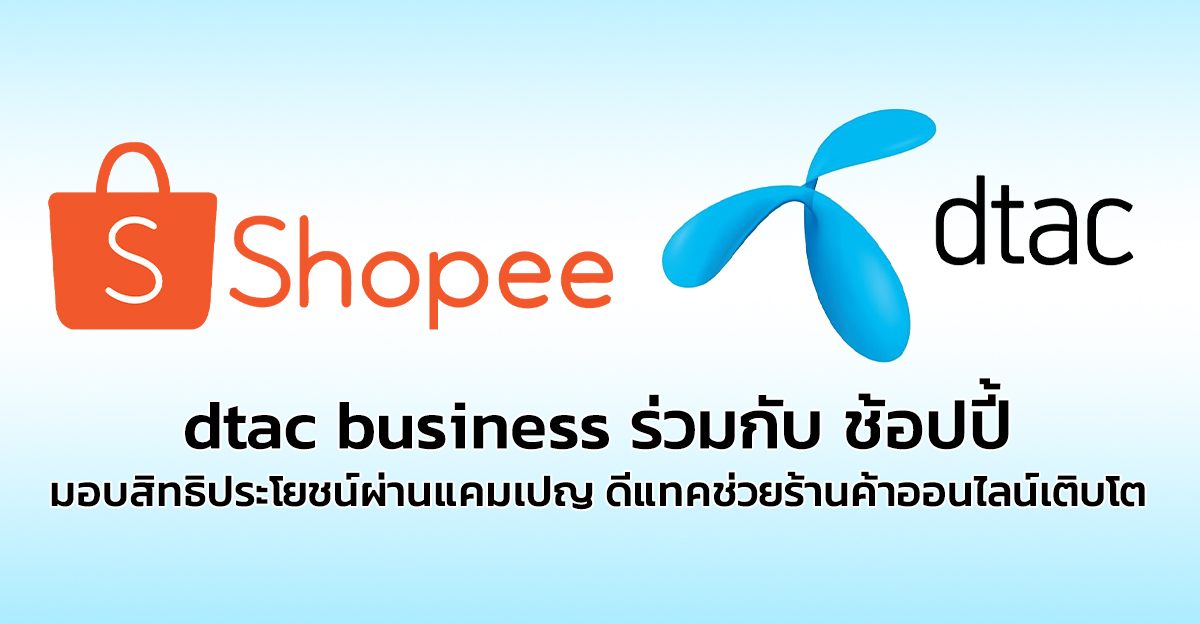 บริษัท โทเทิ่ล แอ็คเซ็ส คอมมูนิเคชั่น จำกัด (มหาชน) หรือดีแทค โดย dtac business บริการเทคโนโลยีสื่อสารและโซลูชันสำหรับ กลุ่มองค์กรธุรกิจ ขนาดเล็ก กลางและองค์กรขนาดใหญ่ และ ช้อปปี้ ผู้นำแพลตฟอร์มอีคอมเมิร์ซในภูมิภาคเอเชียตะวันออกเฉียงใต้และไต้หวัน เดินหน้าสนับสนุนภาคธุรกิจและร่วมฉลองมหกรรม Shopee 12.12 Birthday Sale มอบสิทธิประโยชน์ผ่านแคมเปญ “ดีแทคช่วยร้านค้าออนไลน์เติบโตบนช้อปปี้” ให้กับผู้ประกอบการรายย่อยบนแพลตฟอร์มช้อปปี้ เพื่อสนับสนุนทรัพยากรที่จำเป็น โดยเฉพาะอย่างยิ่งกับอินเทอร์เน็ต และโซลูชันช่วยขายออนไลน์ เพิ่มขีดความสามารถให้ผู้ประกอบการในการดำเนินธุรกิจบนโลกอีคอมเมิร์ซได้อย่างมีประสิทธิภาพ พร้อมจับกระแสการเติบโตของอุตสาหกรรมอีคอมเมิร์ซในช่วงโค้งสุดท้ายปลายปี