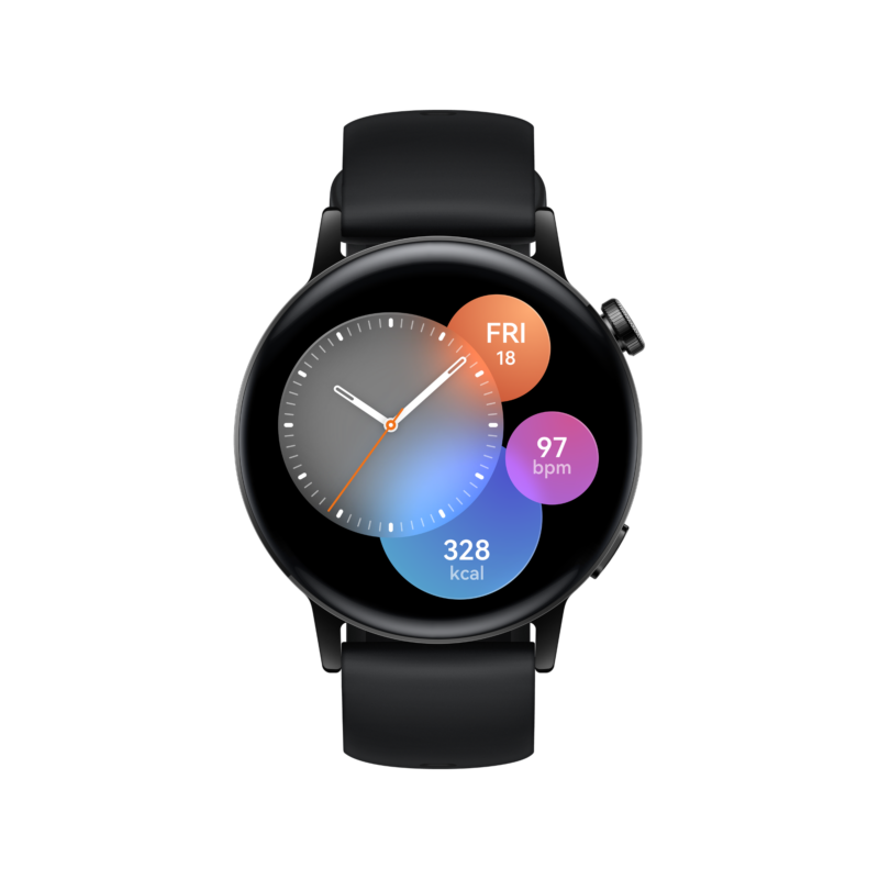 HUAWEI WATCH GT 3 ขนาด 46 มม. เอาใจคนรักนาฬิกาสุดหรูด้วย หน้าปัดใหญ่ดีไซน์กลมแบบพรีเมียม ควบคุมสะดวกทั้งด้วยจอสัมผัส AMOLED 1.43 นิ้ว พร้อมปุ่มที่สามารถหมุนเพื่อเลื่อนขึ้นหรือลง และซูมเข้าหรือซูมออกได้ โดยคงรู้สึกของความเป็นนาฬิกาพรีเมี่ยมเอาไว้ได้อย่างแนบเนียน รุ่นพี่ใหญ่มีแบตเตอรี่อายุการใช้งานยาวนานถึง 14 วัน[4] มาด้วยกัน 2 สไตล์ ได้แก่ Active Edition ตัวเรือนพลาสติก สายยางสังเคราะห์สีดำ มอบลุคสปอร์ต ราคา 7,990 บาท และ Classic Edition ตัวเรือนสเตนเลสสตีล สายหนัง เหมาะกับลุคทำงาน ราคา 8,490 บาท