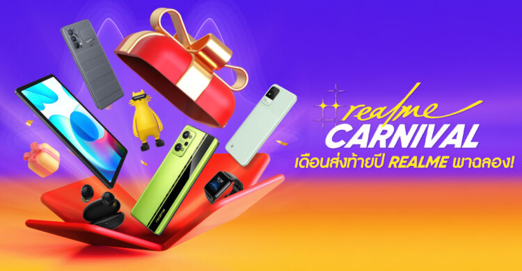 realme แบรนด์สมาร์ตโฟนเพื่อคนรุ่นใหม่ที่เติบโตเร็วที่สุดในโลก ส่งท้ายปีเก่าต้อนรับปีใหม่ด้วยเทศกาลช็อปครั้งยิ่งใหญ่ให้แฟน ๆ  realme ต้องมีว้าว! กับ realme คาร์นิวัล! เดือนธันวา พาใจสุขสันต์ พบโปรโมชั่นอัดแน่นเพียบ และกิจกรรมพิเศษแจกของรางวัลตลอดเดือนธันวาคม เพื่อให้แฟน ๆ ได้สัมผัสช่วงเวลาแห่งความสุขกับแก็ดเจ็ตในราคาสุดคุ้ม ไม่ว่าจะเป็นรางวัลชิ้นหรูให้กับตัวเอง หรือมอบเป็นของขวัญชิ้นใหญ่ให้กับคนสำคัญในวันพิเศษที่กำลังจะมาถึง