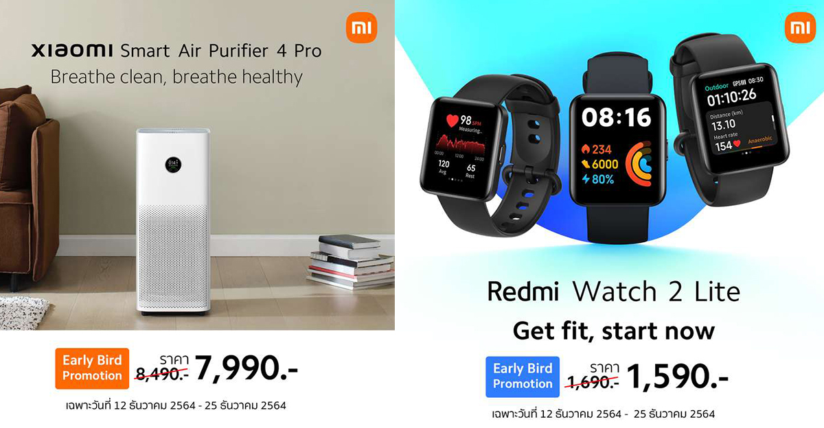 พิเศษ! Early bird promotion ในระหว่างวันที่ 12 – 25 ธันวาคม 2564 ลูกค้าสามารถซื้อ Redmi Watch 2 Lite  ในราคาพิเศษเพียง 1,590 บาทเท่านั้น!