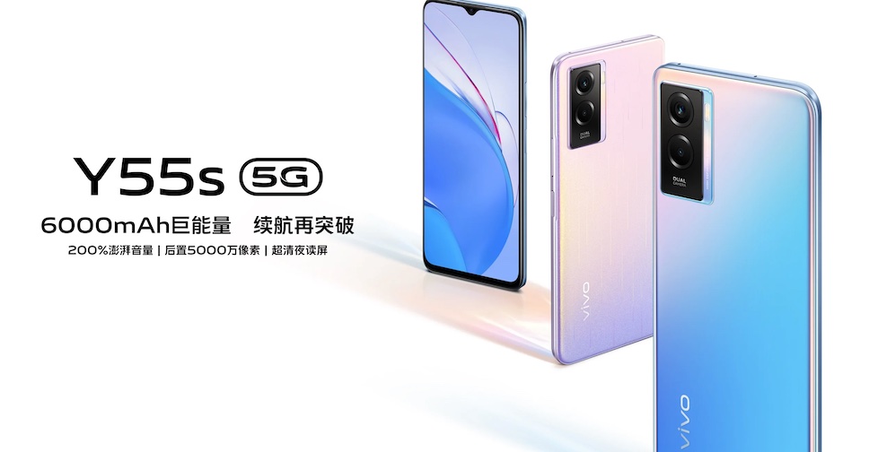 vivo เปิดตัวสมาร์ทโฟน vivo Y55s 5G อย่างทางการในประเทศจีน โดยชูจุดเด่นที่แบตเตอรี่ขนาดใหญ่ ความจุ 6,000mAh รองรับชาร์จเร็ว 18W ผ่านพอร์ตเชื่อมต่อ USB-C และมีกล้องคู่หลัง ตัวหลัก 50 ล้านพิกเซล วางคู่กับกล้อง Macro 2 ล้านพิกเซล ช่วยถ่ายภาพในระยะใกล้สูงสุด 4 เซนติเมตร