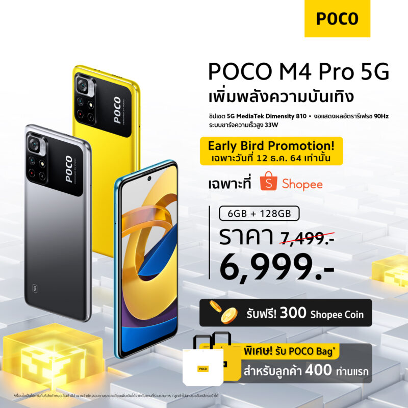 พิเศษ! เฉพาะวันที่ 12 ธันวาคม 2564 วันเดียวเท่านั้น ด้วย POCO M4 Pro 5G (รุ่น 6GB+128GB) จัดราคาพิเศษเพียง 6,999 บาท จากราคาเต็ม 7,499 บาท พร้อมรับ Shopee Coin อีก 300 บาท!